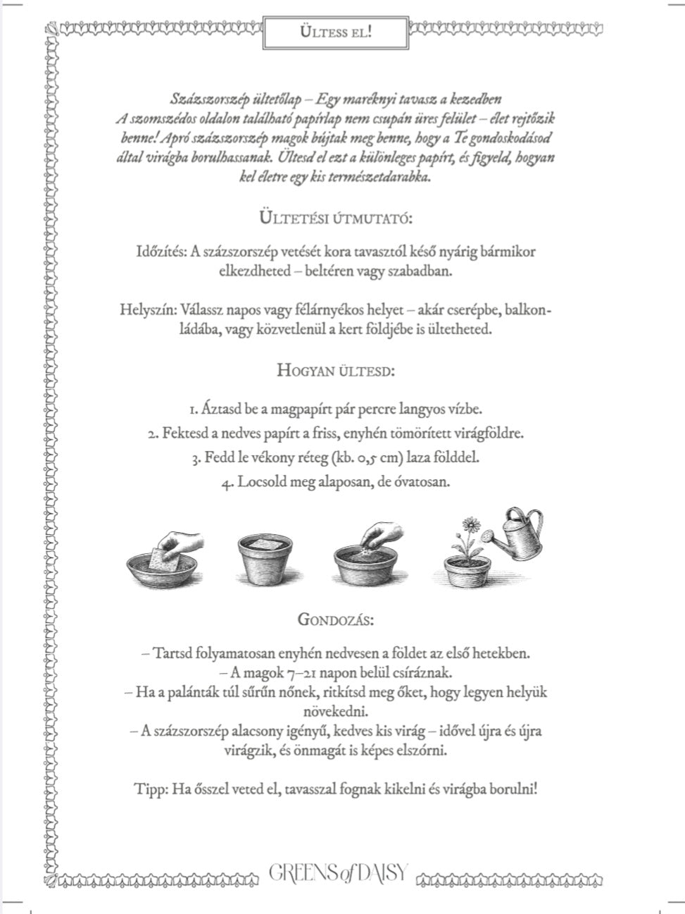 • A legkülönlegesebb oldala, egy virágmagokat tartalmazó oldal, amit elültethetsz!