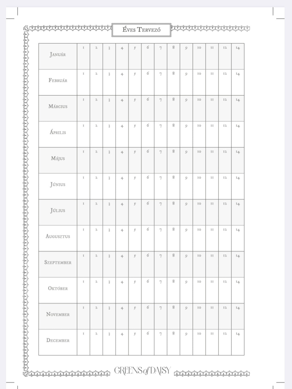 • Tartalmaz még egy gyógynövény gyűjtési naptárt, idénykalendáriumot, vetési naptárt, valamint lehetőséget arra, hogy ne csak a heteidet, hanem az éves céljaidat is meghatározd.